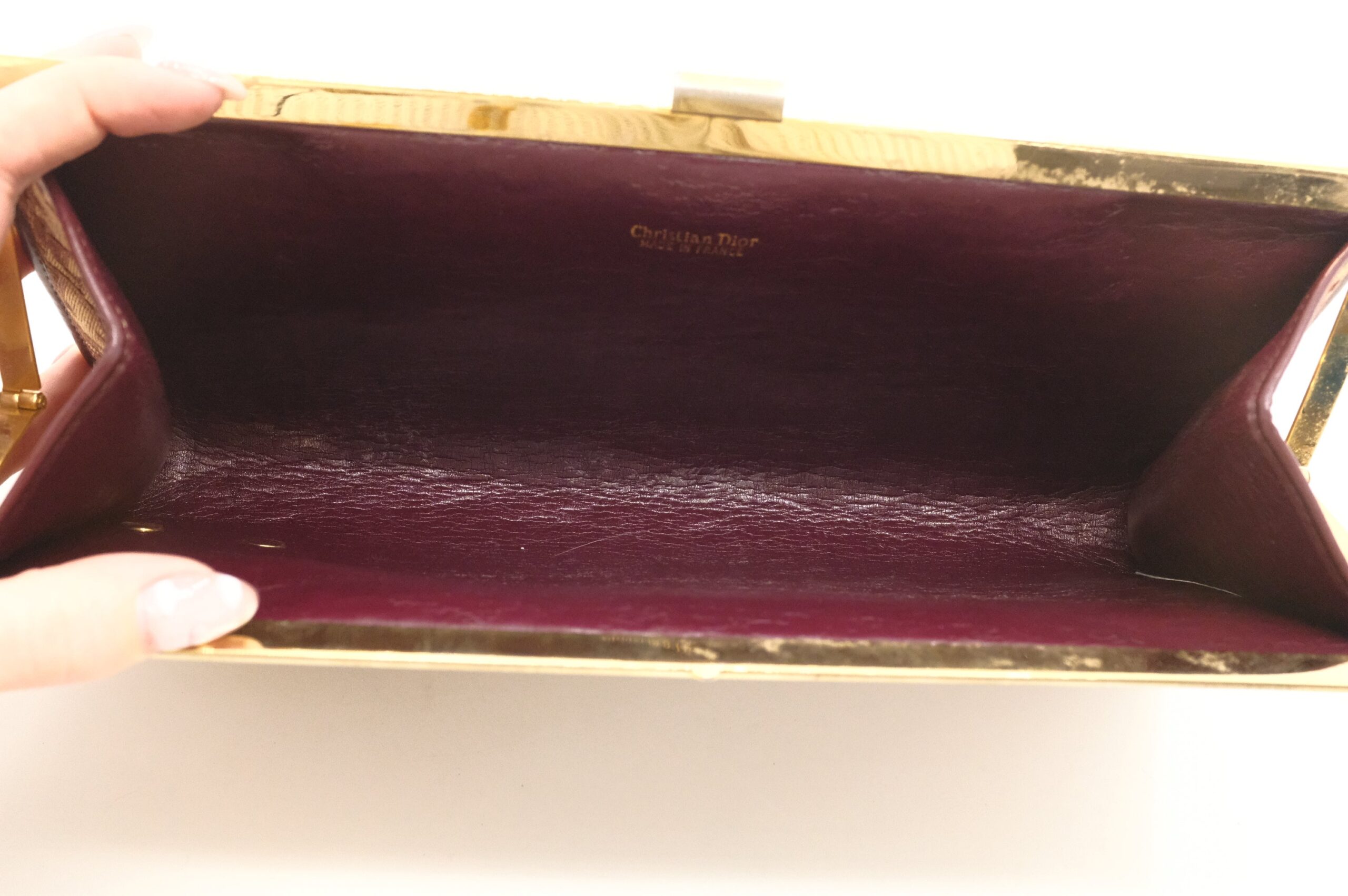 – Hardware: Shiny gold with light surface rub, working closure